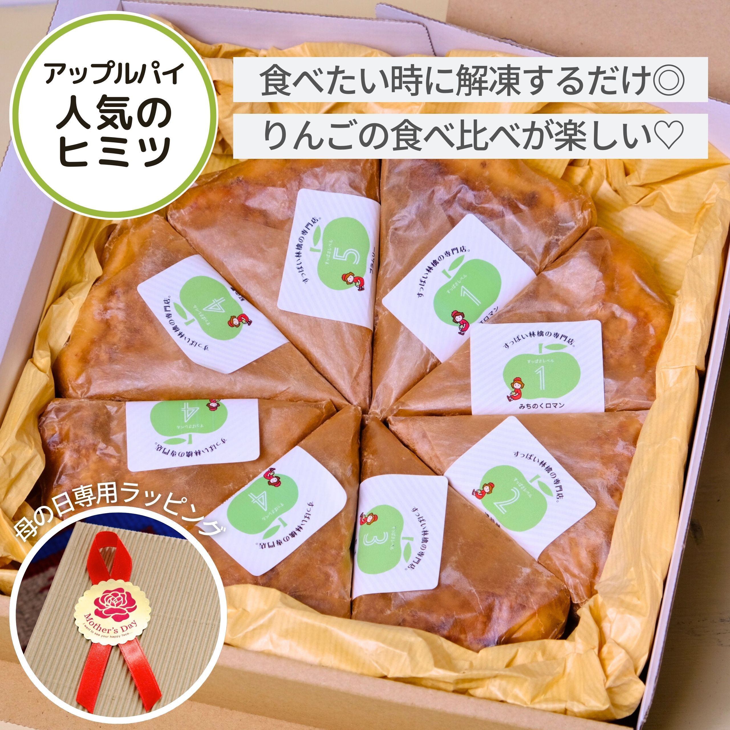 母の日ギフトにおススメの、甘いのからすっぱいのまで4種類のアップルパイ食べ比べセットです。